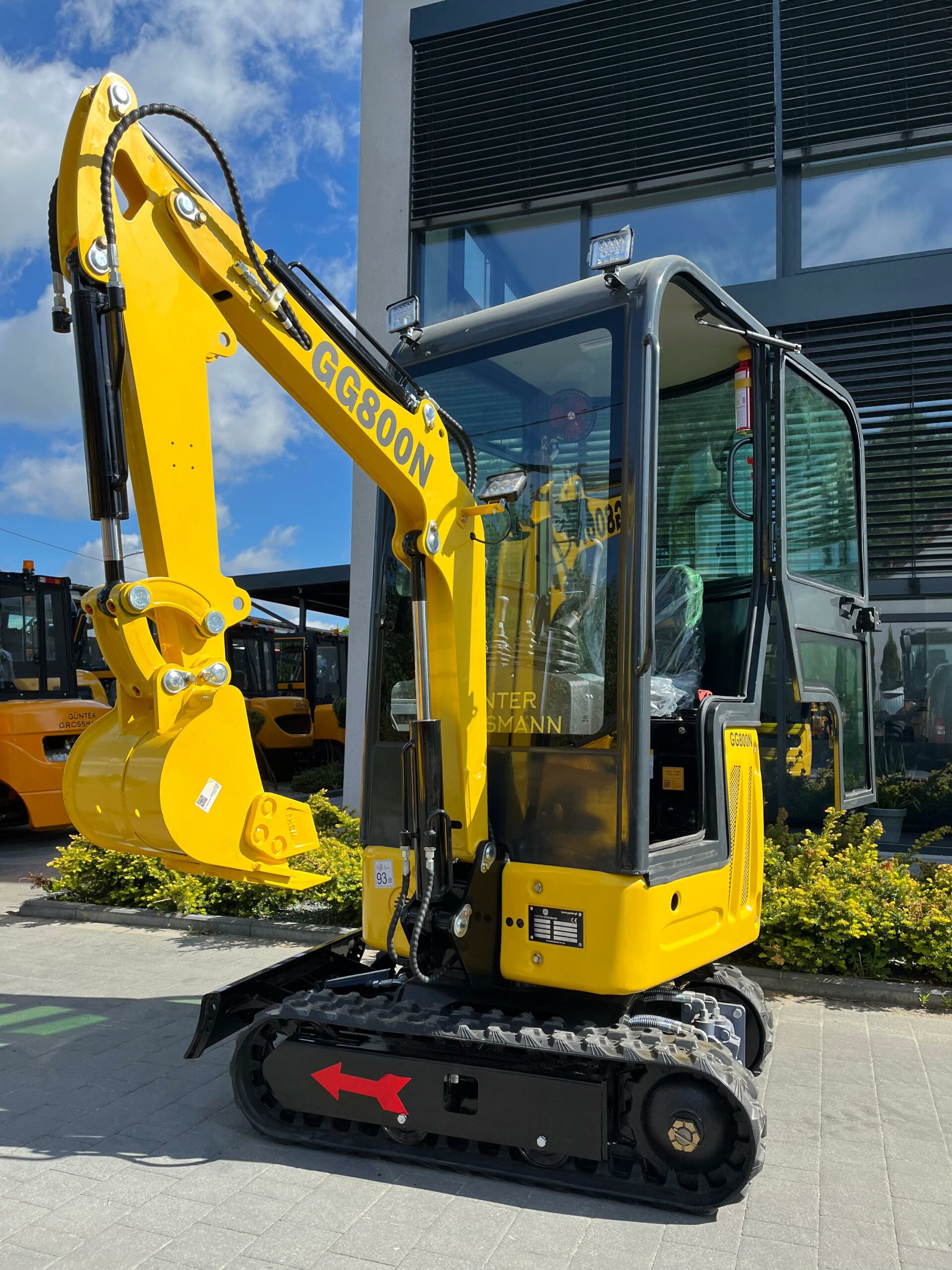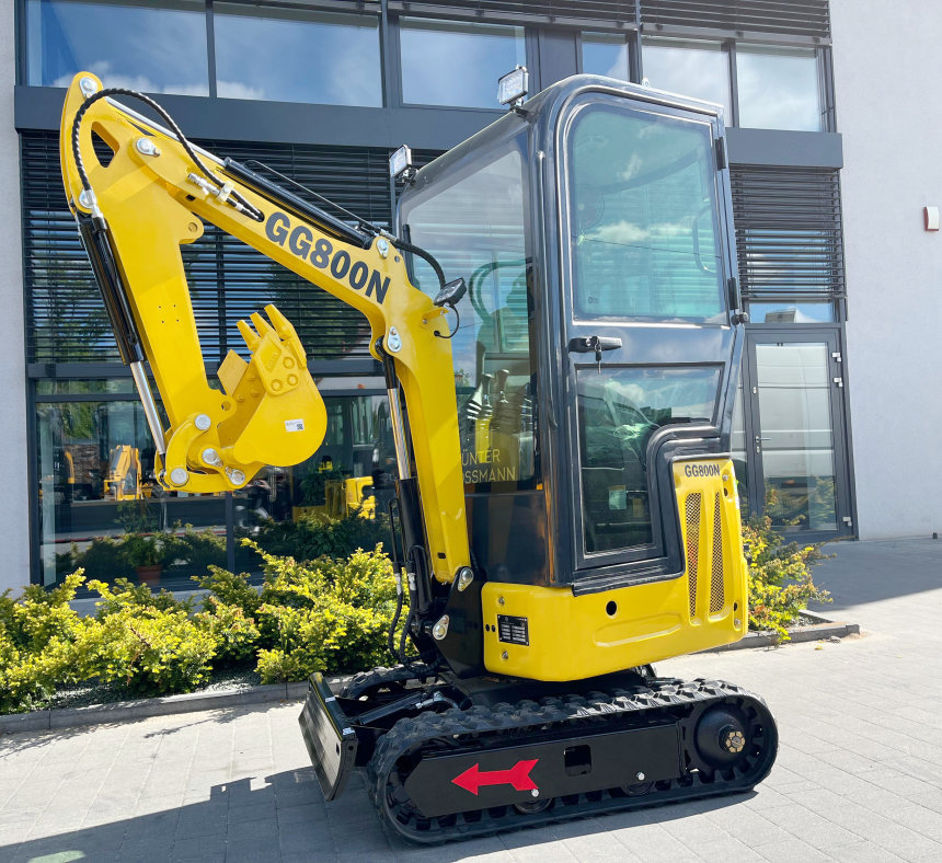 The GG800NC excavator with an operating weight of 1000 kg combines high performance and fuel efficiency. The GG800NC version is equipped with a modern cab that provides the operator with comfort and protection while working in all weather conditions. It is designed to meet the demands of intensive fieldwork, offering reliability, efficiency, and enhanced safety.