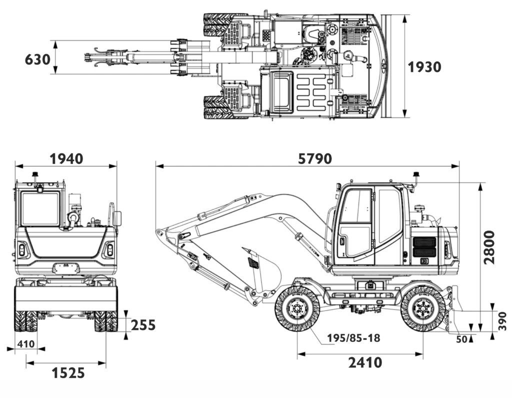 The G60X wheeled excavator combines powerful performance, advanced hydraulics, and exceptional mobility, making it ideal for construction work on varied terrains. Powered by the Euro 5 Yuchai F3065-S580 engine delivering 48 kW, it offers precision, reliability, and efficiency in any situation.