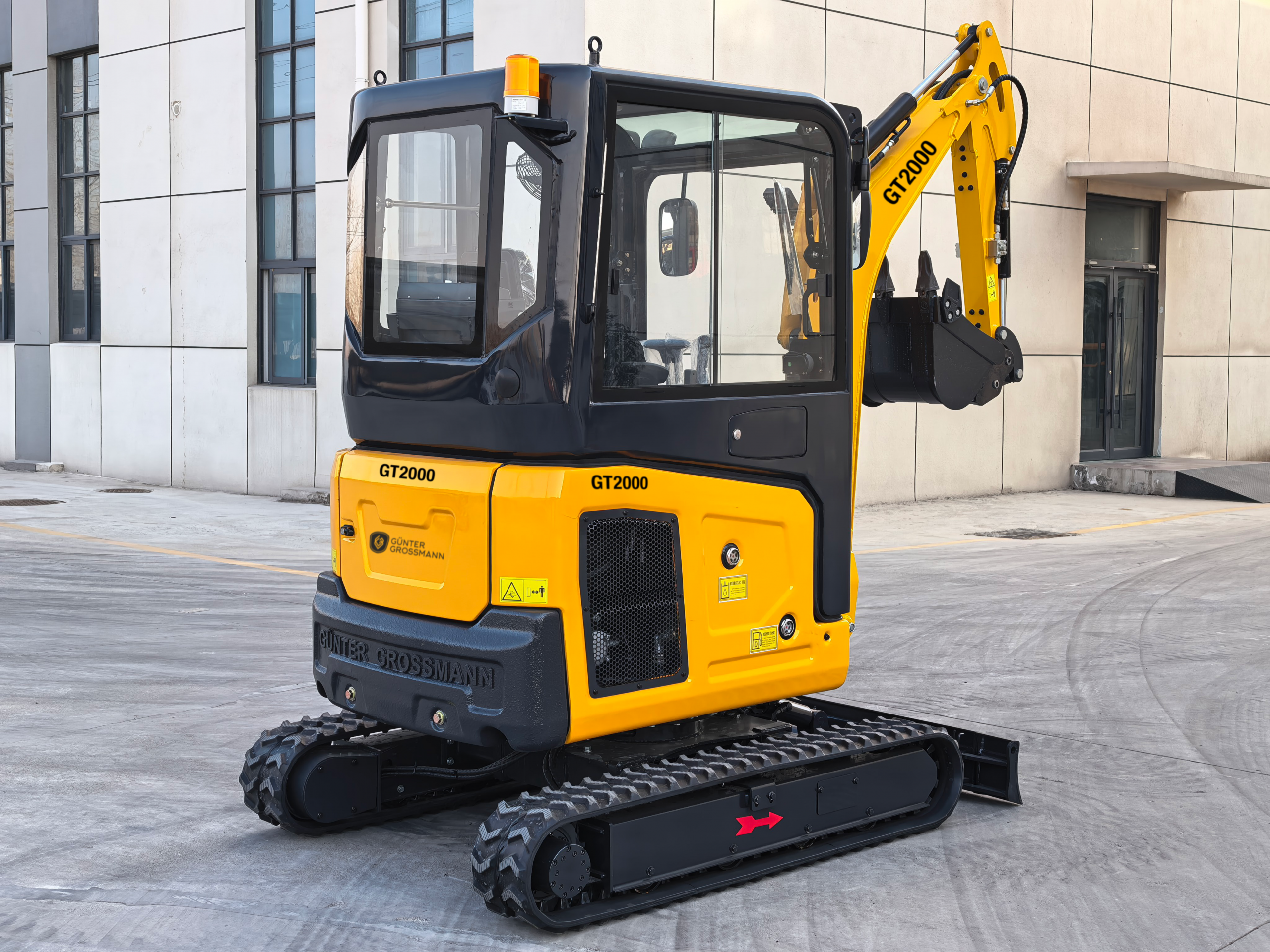 De GT2000 kan graven tot een maximale diepte van 2050 mm, verticaal tot 1955 mm, en de storthoogte bedraagt 2385 mm. Het maximale werkbereik is 3860 mm en de minimale graafhoogte 3365 mm.