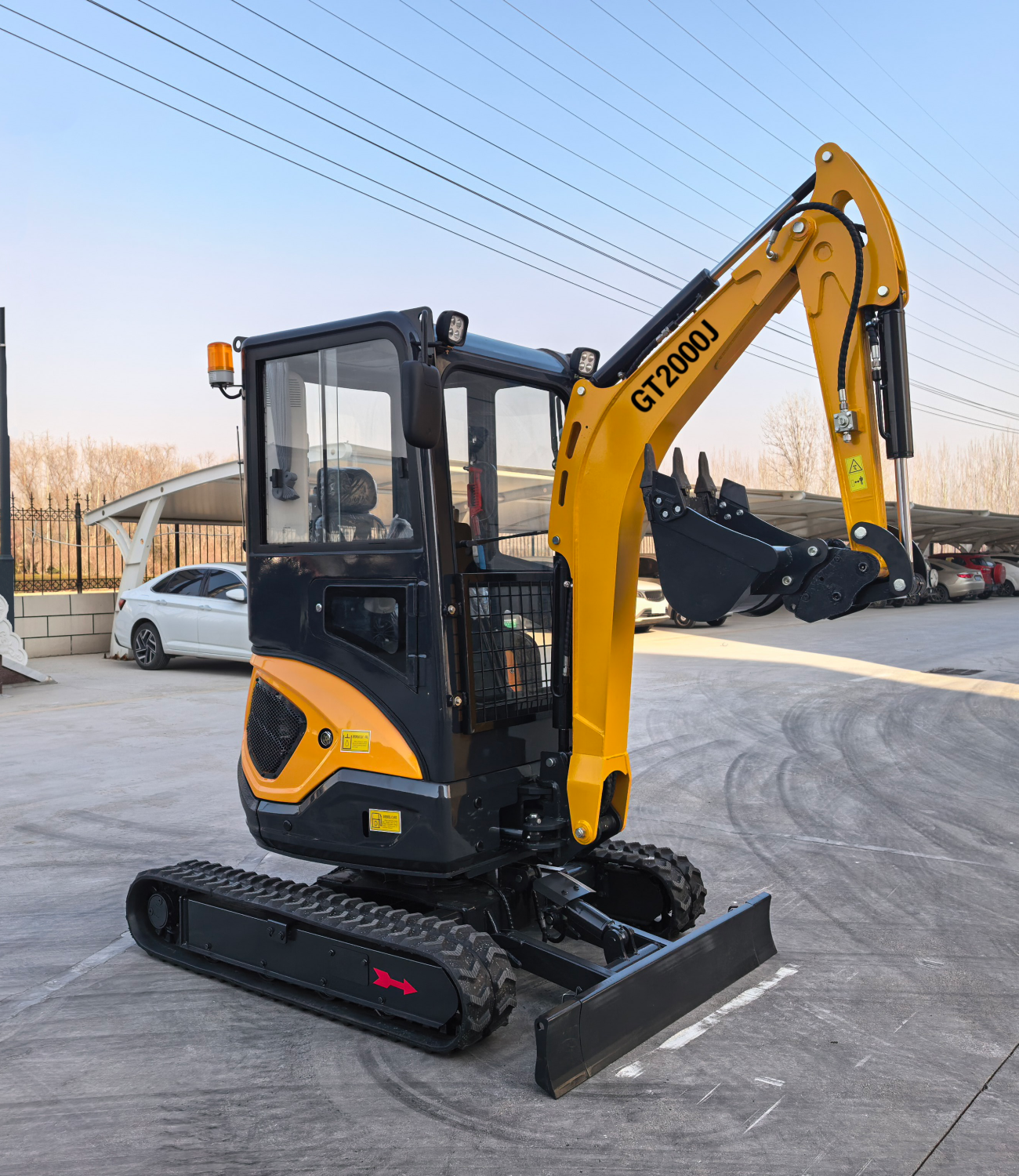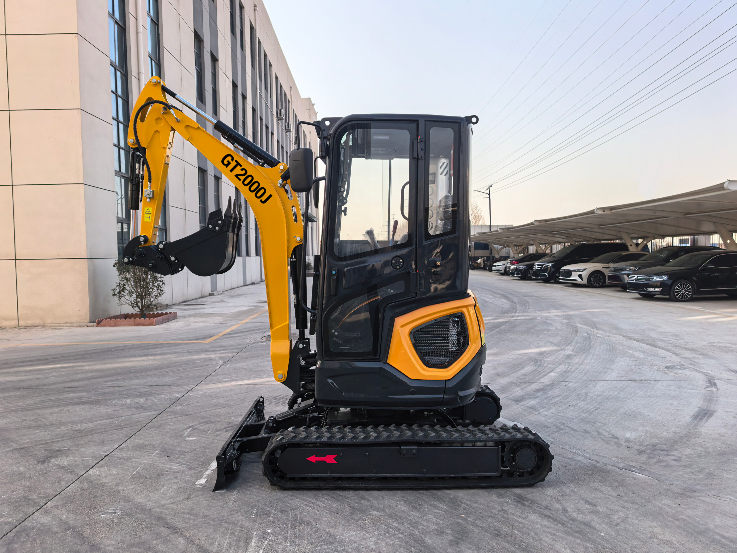 De GT2000J rupsgraafmachine is een compacte en robuuste werkmachine van 2200 kg, geschikt voor grond-, bouw- en installatiewerkzaamheden. Dankzij de stabiele constructie en het precieze hydraulische systeem presteert hij zowel op bouwplaatsen als in beperkte ruimtes.