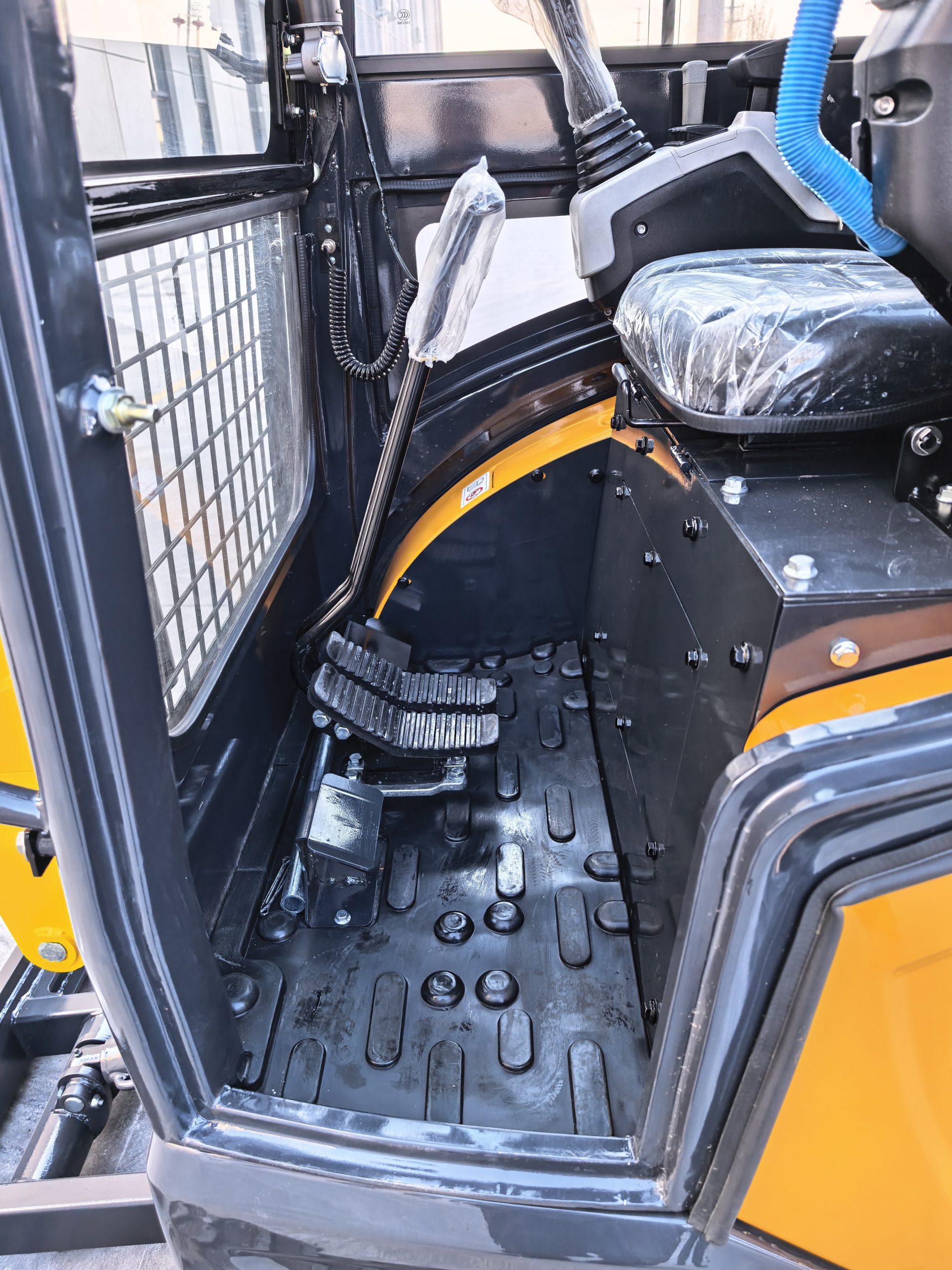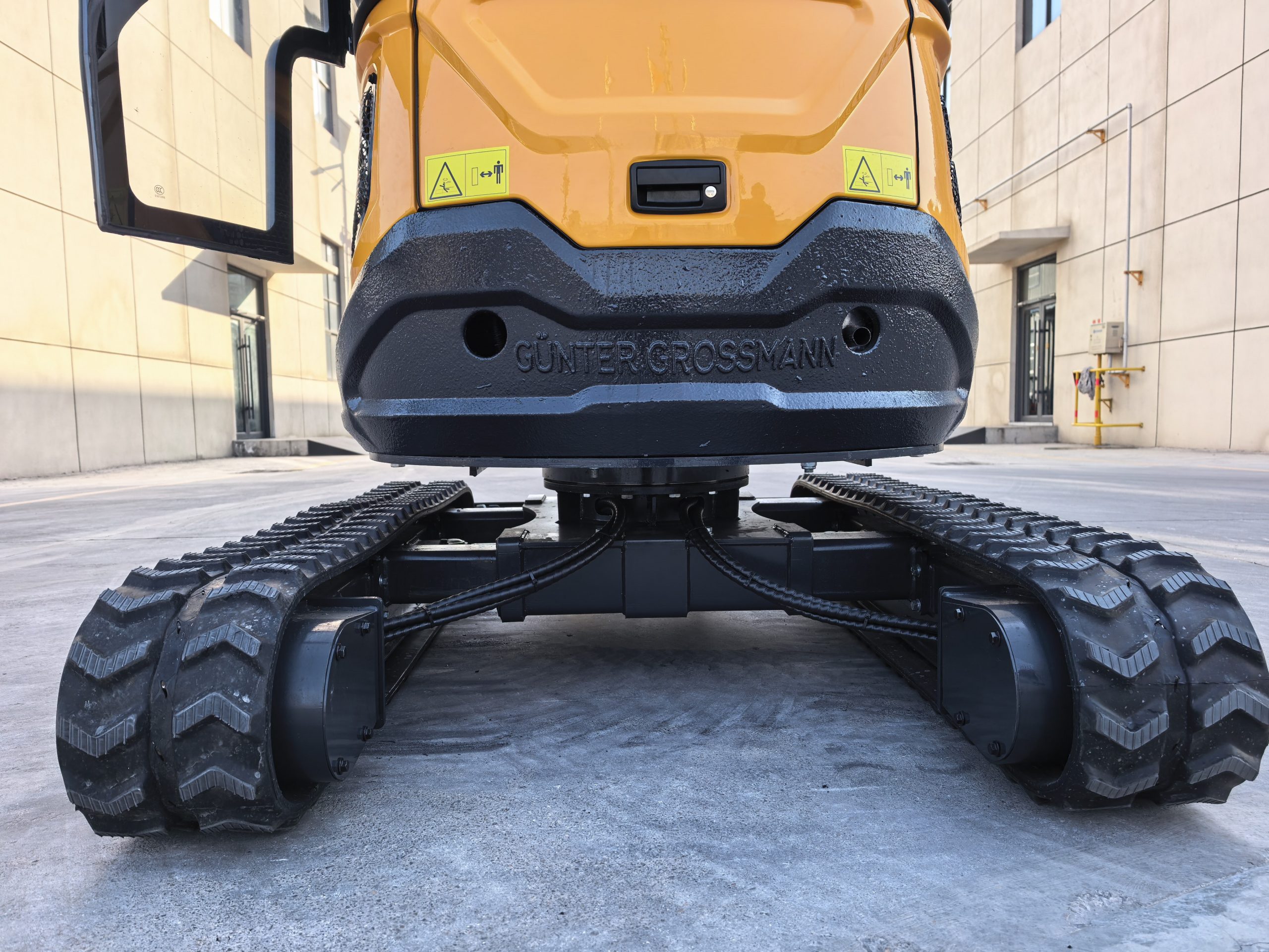 De graafmachine heeft een rupsonderstel met een rupsafstand van 820 mm, een minimale bodemvrijheid van 210 mm en een bodemvrijheid van het bulldozerblad van 230 mm. De maximale graafdiepte van het blad bedraagt 275 mm, wat de stabiliteit tijdens het werk verhoogt.