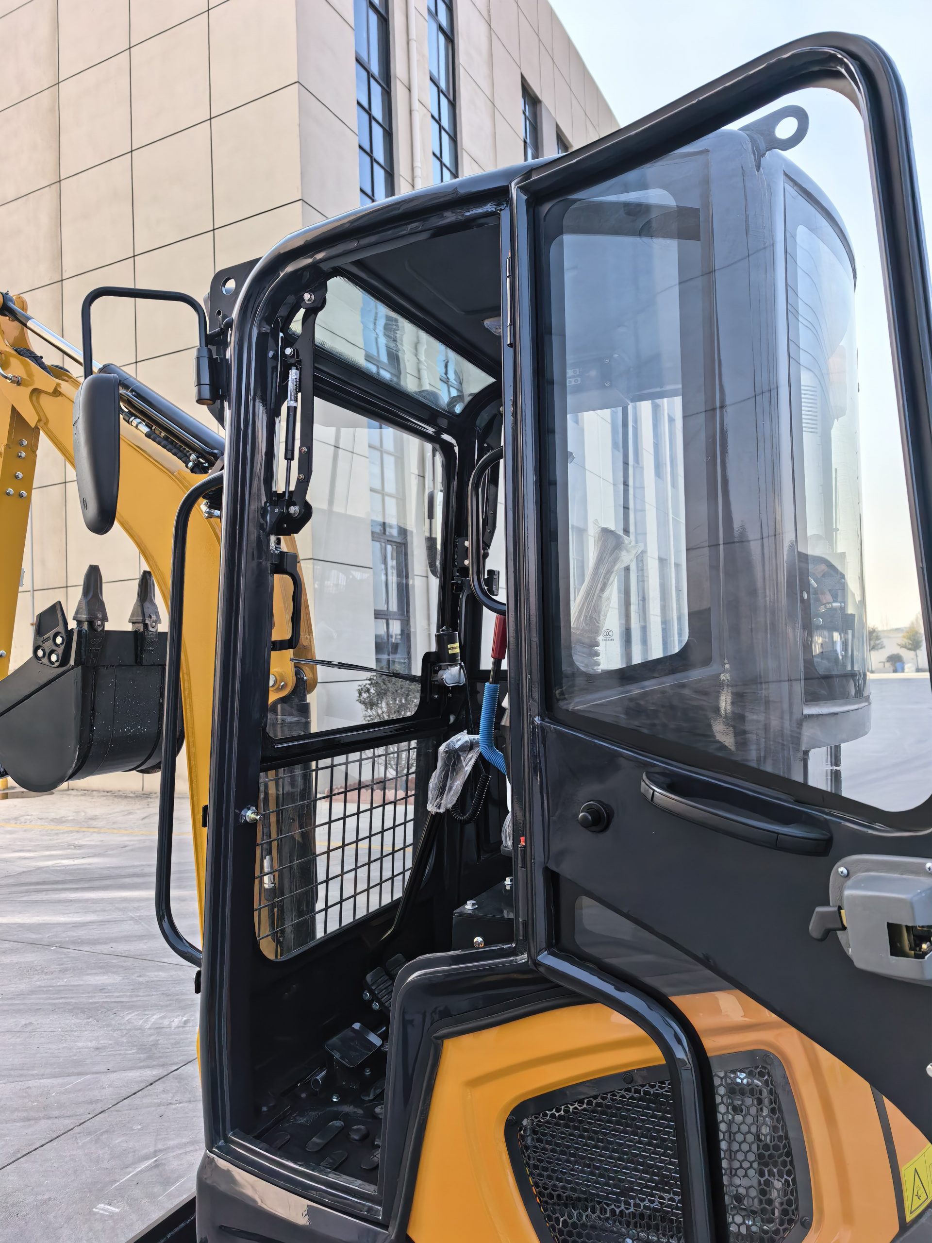 De machine is uitgerust met een betrouwbare Yanmar 3TNV80F motor met een nominaal vermogen van 15,2 kW, die zorgt voor stabiele prestaties, laag brandstofverbruik en een lange levensduur. De maximale hellingshoek bedraagt 35°, waardoor werken op oneffen terrein mogelijk is.