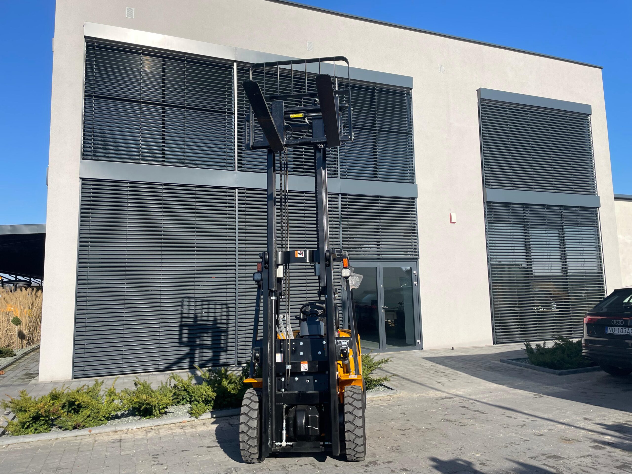 De H25 2,5T 3M dieselheftruck is een machine die betrouwbaarheid en hoge prestaties garandeert, ideaal voor intensief gebruik in magazijnen en industriële omgevingen. Met een hefvermogen tot 2500 kg en een gewicht van 3680 kg is dit model perfect voor het transporteren van zware lasten in magazijnen en op bouwplaatsen.